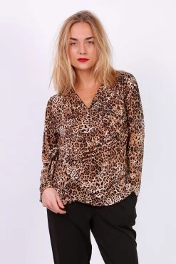 Dit shirtje in trendy luipaardprint heeft een overslag en heeft lange mouwen. Een shirtje met een super comfortabele pasvorm, gemaakt een elastisch en soepel materiaal. Het shirtje is een onesize en is geschikt voor maat S t/m XL.