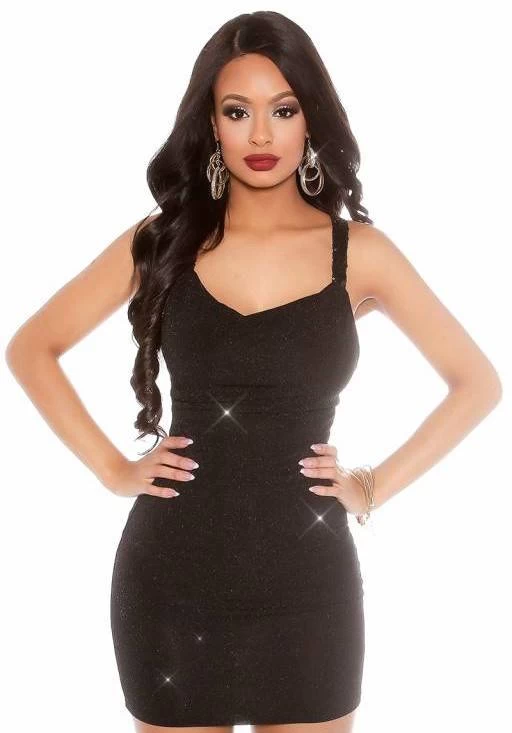 Dit zwarte party jurkje heeft een glitterstof, is gevoerd en heeft pailletten aan de voorkant en op de schouderbandjes. Het jurkje is een onesize, is geschikt voor maat S t/m L. Gemaakt van acryl, polyester en katoen. Een jurk met een feestelijke glamour uitstraling. Verkrijgbaar in verschillende kleuren.